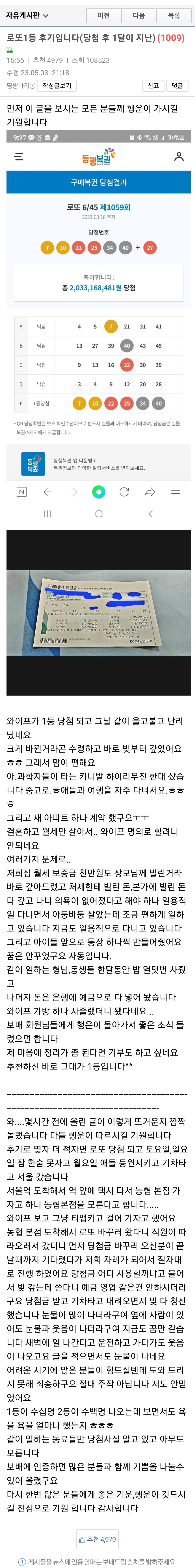 로또 1등 당첨된 사람의 후기 ,,